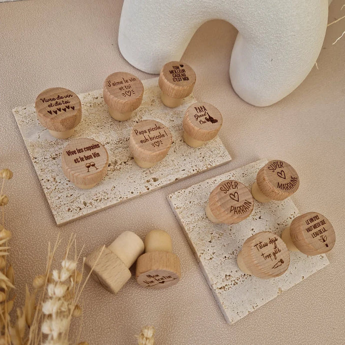 Bouchon de vin en bois – Personnalisable avec gravure (logo, prénom, texte)